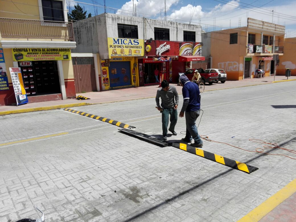 Por la tarde de este martes se realizó la colocación de dos reductores de velocidad de material de gomo, los cuales les fueron instalados sobre la calle Pablo Sidar; uno de ellos fue colocado en la entrada principal de San Pablo el Monte y el segundo fue instalado 50 metros hacia arriba del semáforo que se encuentra ubicado entre la calle 5 de febrero y Pablo Sidar.