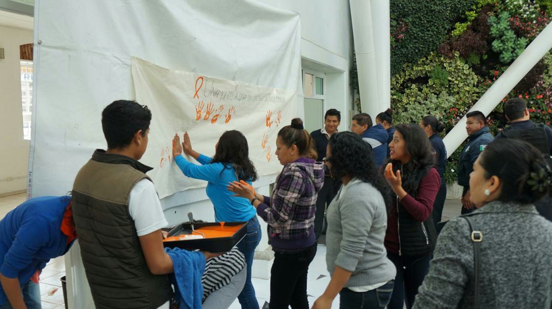 Silva Eliana Cholula Amaro responsable del Instituto Municipal de la Mujer comentó que el plasmar las manos significa que es una manera de que; los presentes se identifiquen con el problema de violencia que siempre ha existido hacia las mujeres.