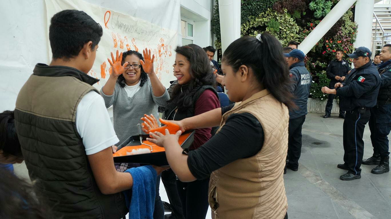 Silva Eliana Cholula Amaro responsable del Instituto Municipal de la Mujer comentó que el plasmar las manos significa que es una manera de que; los presentes se identifiquen con el problema de violencia que siempre ha existido hacia las mujeres.