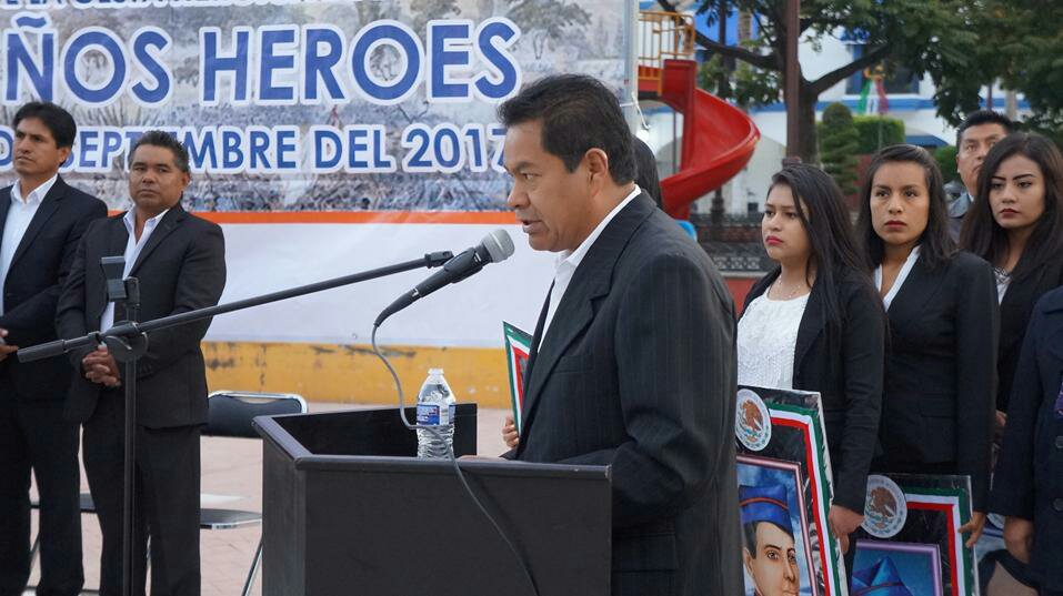 San Pablo del Monte, Tlax. – Este miércoles 13 de Septiembre bajo una ceremonia cívica el presidente municipal Cutberto B. Cano Coyotl conmemoró la gesta heroica de los niños héroes de chapultepec.