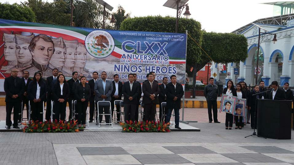 Ante la presencia de alumnos del Centro Escolar México, personal del H. Ayuntamiento, regidores y presidentes de comunidad desde muy temprano se dieron cita en la explanada del municipio para rendir honores a la bandera en conmemoración a los seis cadetes mexicanos del colegio militar que murieron heroicamente en la defensa del castillo de Chapultepec durante la invasión estadounidense en 1847.