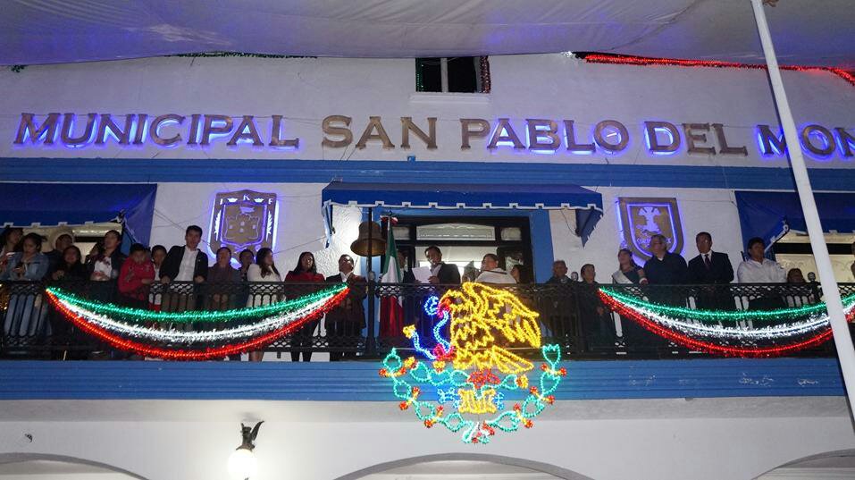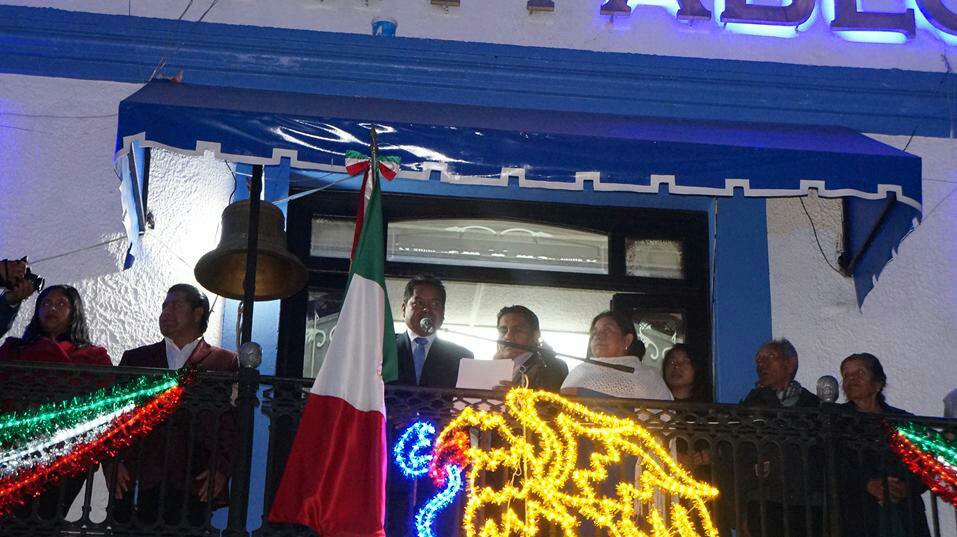 San Pablo del Monte, Tlax.- Como es tradición el alcalde, Cutberto B. Cano Coyotl acompañado del cuerpo de regidores y funcionarios del ayuntamiento éste día 15 de septiembre dio el tradicional grito de independencia ante ciudadanos del municipio.