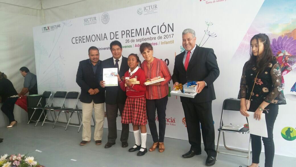 San Pablo del Monte, Tlax. – Este martes 26 de septiembre la niña Ana María Vázquez y Vázquez de la primaria Lázaro Cárdenas de la comunidad de San Bartolomé recibió de la Lic. Sandra Chávez Rúelas Presidenta Honorífica del Sistema Estatal para el Desarrollo Integral de la Familia un reconocimiento por participar en el concurso de dibujo Nacional de Cultura para el Turismo Sustentable, en el Palacio de Cultura del Estado de Tlaxcala.