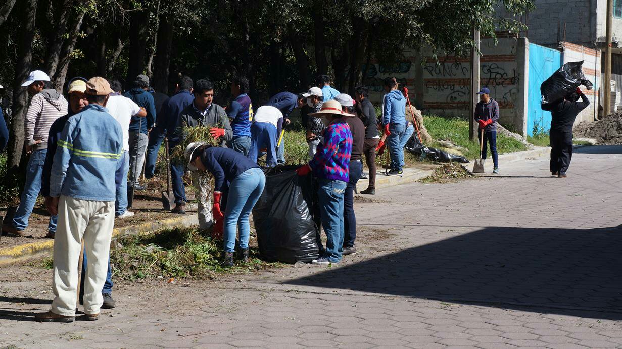 San Pablo del Monte, Tlax.- En apoyo de los vecinos de la comunidad de San Pedro el presidente municipal Cutberto B. Cano Coyotl acompañado de trabajadores del ayuntamiento, grupos sociales del Cristo y San Nicolás, realizaron limpieza en la zona de “Capixatla”.