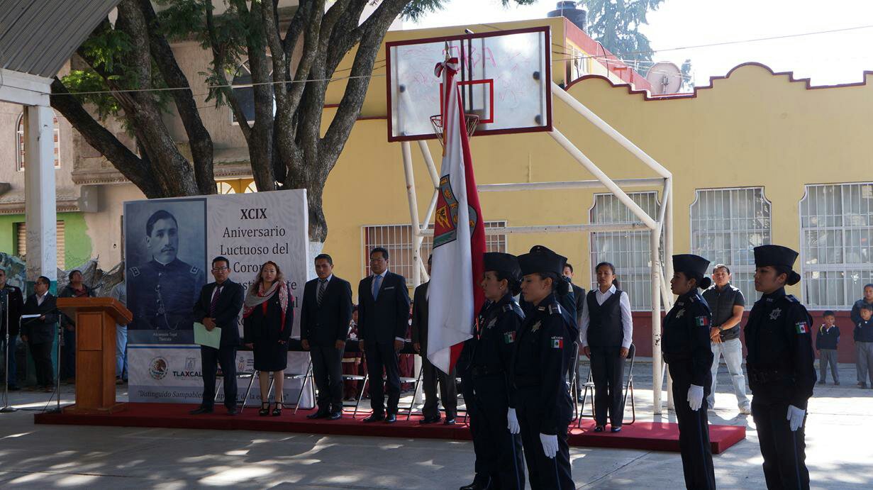 Bajo homenaje al lábaro patrio, los presentes rindieron honores así también colocaron ofrendas florales en el atrio de la iglesia de la comunidad de la Santísima donde descansan los restos al que actualmente es considerado por decreto estatal «Benemérito del Estado de Tlaxcala».