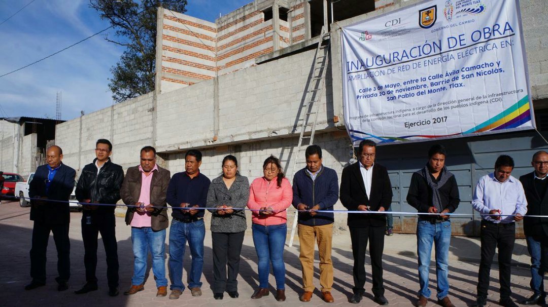 San Pablo del Monte, Tlax. – Este martes 24 de octubre el presidente municipal Cutberto B. Cano Coyotl, entregó a los vecinos beneficiados de la comunidad de San Nicolás la ampliación de red eléctrica.