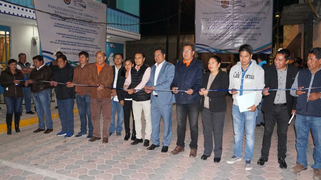 San Pablo del Monte, Tlax. – Este 25 de octubre vecinos de la calle Sonora en la Comunidad de San Cosme recibieron oficialmente las obras de rehabilitación por parte del alcalde municipal Cutberto B. Cano Coyotl.