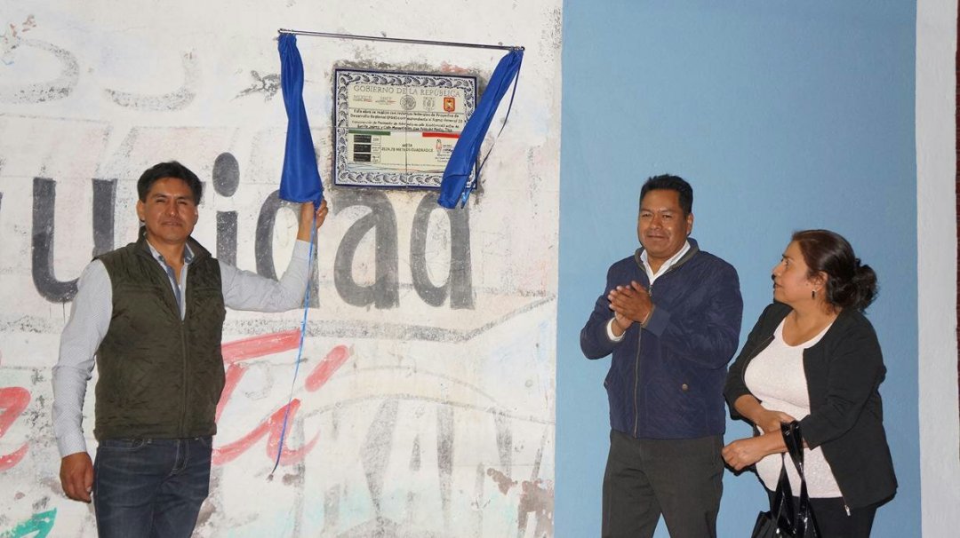 En punto de las 18 horas vecinos de la comunidad de San Bartolomé, Barrio de Jesús, regidores y presidentes de comunidad se dieron cita para develar la placa y cortar el listón de inauguración de obra pública en la calle Xicoténcatl y Benito Juárez.