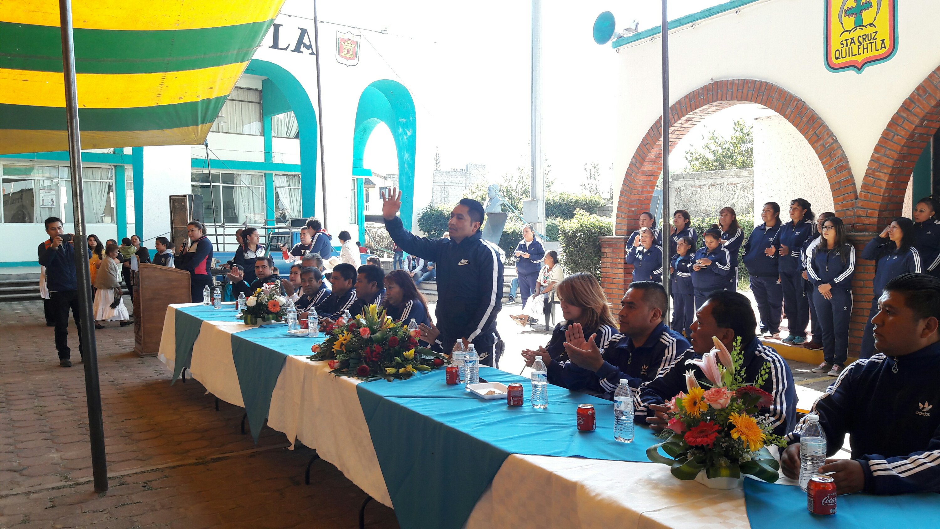 El presidente municipal de Quilehtla, Óscar Pérez Rojas, encabezó el desfile conmemorativo al CVII Aniversario de la Revolución Mexicana, así como un festival en el que participaron instituciones educativas.