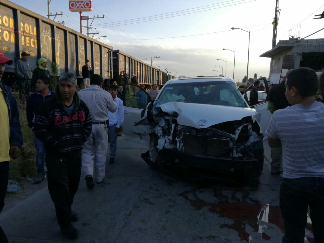 Este miércoles aproximadamente a las 17:00 horas, la camioneta Toyota Sienna con placas TZH – 6316 color blanca del estado de Puebla , no logró cruzar la vía del tren, mismo que la embistió.
