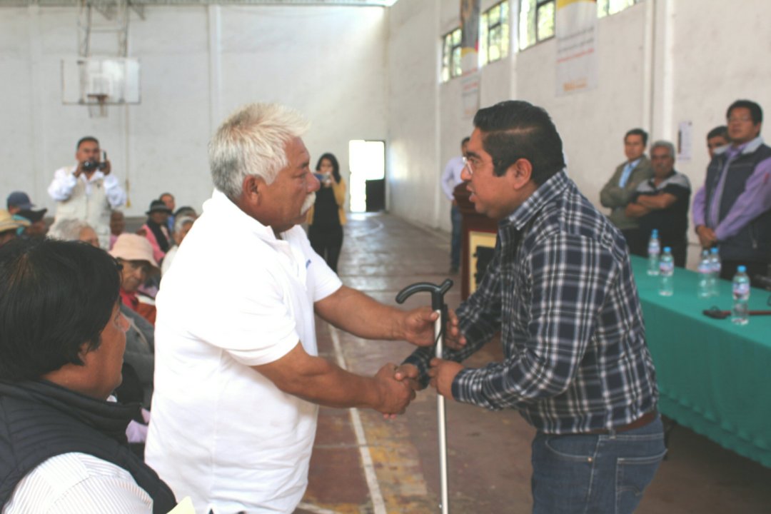 Derivado de un trabajo de gestión en coordinación con el DIF municipal, el alcalde de Panotla, Eymard Grande Rodríguez, realizó la entrega de 70 bastones y una andadera en beneficio de igual número de personas con capacidades diferentes.