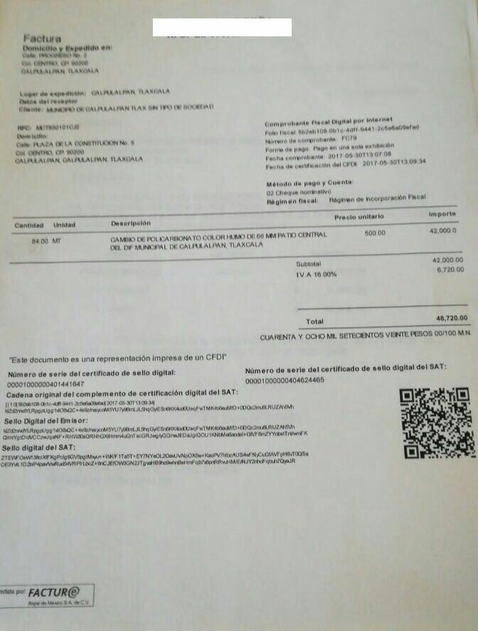 La hoja firmada por el proveedor estableció un costo de 38 mil pesos, en donde incluso ofrece un descuento de seis mil pesos, pero más tarde la misma persona presenta una factura por la cantidad de 48 mil 720 pesos, por realizar el mismo trabajo.