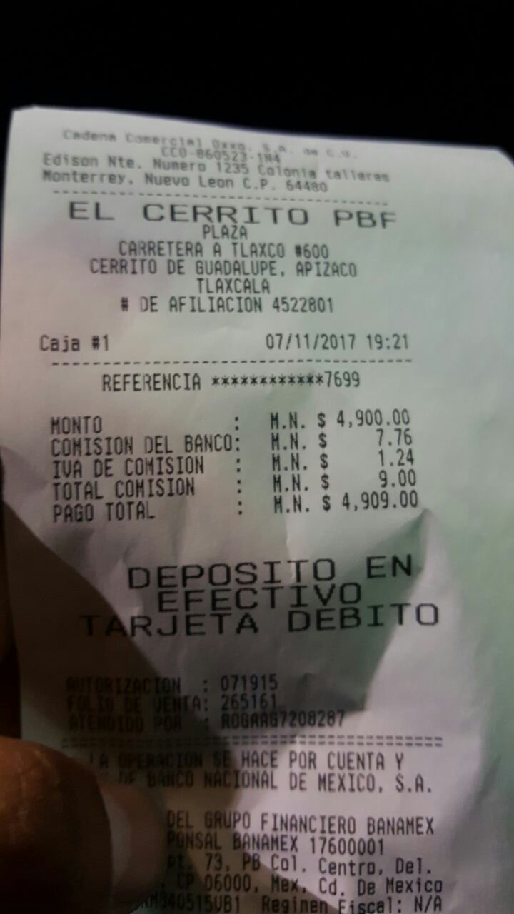 Posteriormente, exhibió la copia de un comprobante de depósito por cuatro mil 900 pesos que presuntamente se hizo a la cuenta del auxiliar de tesorería, Marco Antonio Esquivel López, 5256781894547699 de Banamex, el pasado siete de noviembre de este año.