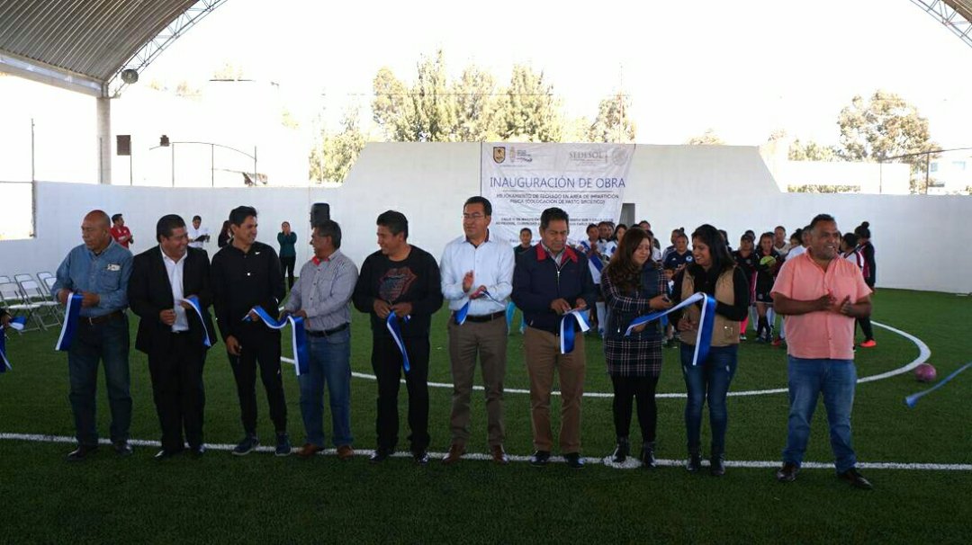 San Pablo del Monte, Tlax. – Este viernes 22 de diciembre el presidente municipal Cutberto B. Cano Coyotl, entrego formalmente la rehabilitación de la cancha de futbol rápido en la unidad deportiva de la comunidad de Tlaltepango.