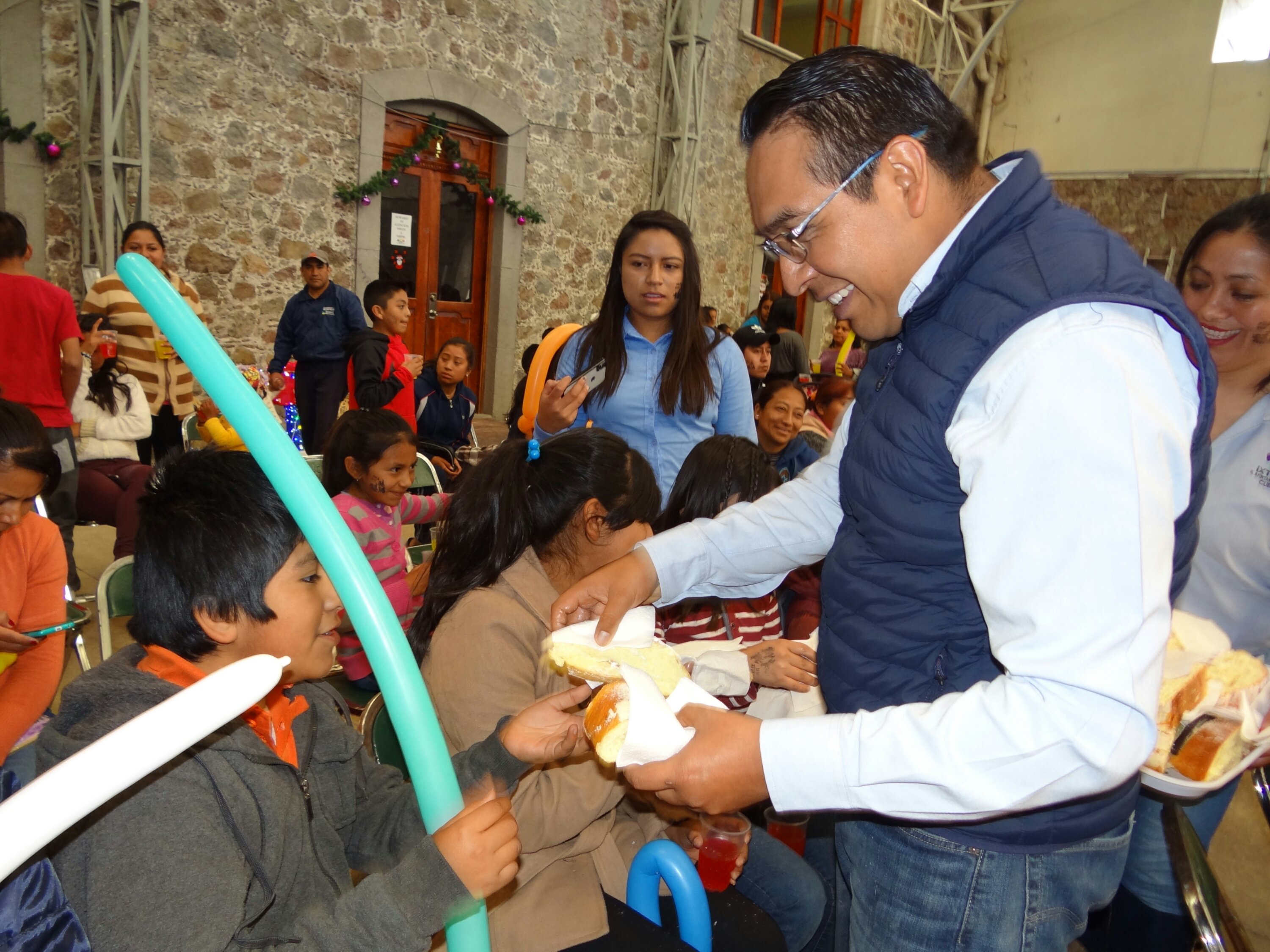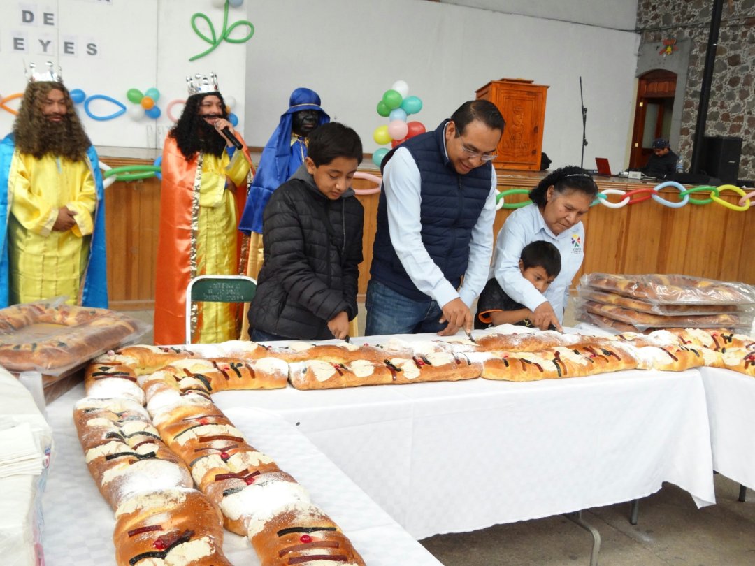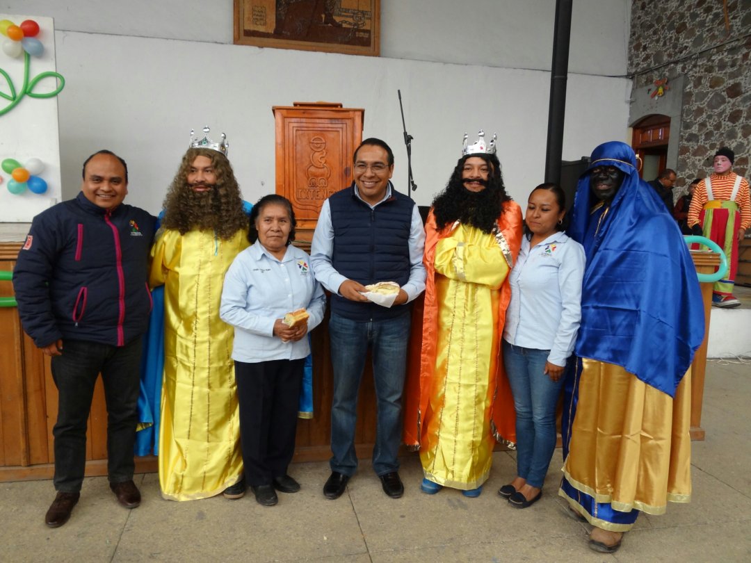 Familias de Ixtenco y turistas que asistieron al convivió por el Día de Reyes degustaron de una exquisita rosca y chocolate acompañados por directores de las diversas áreas del Ayuntamiento, así como por los reyes magos; Melchor, Gaspar y Baltazar.