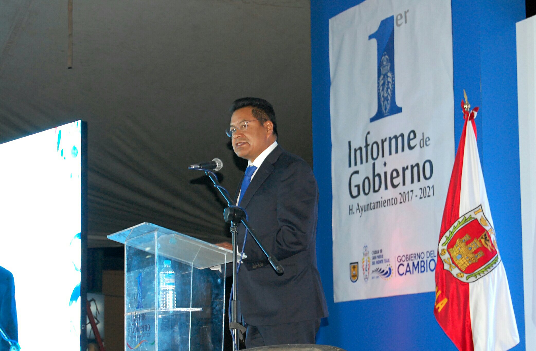 Con testimonios de los beneficiarios recopilados en video, el alcalde de San Pablo del Monte, Cutberto Cano Coyotl, presentó su Primer Informe de Gobierno en el que destacó la mayor inversión registrada en obras públicas con más de 123 millones 541 mil pesos en 175 acciones realzadas en 2017.