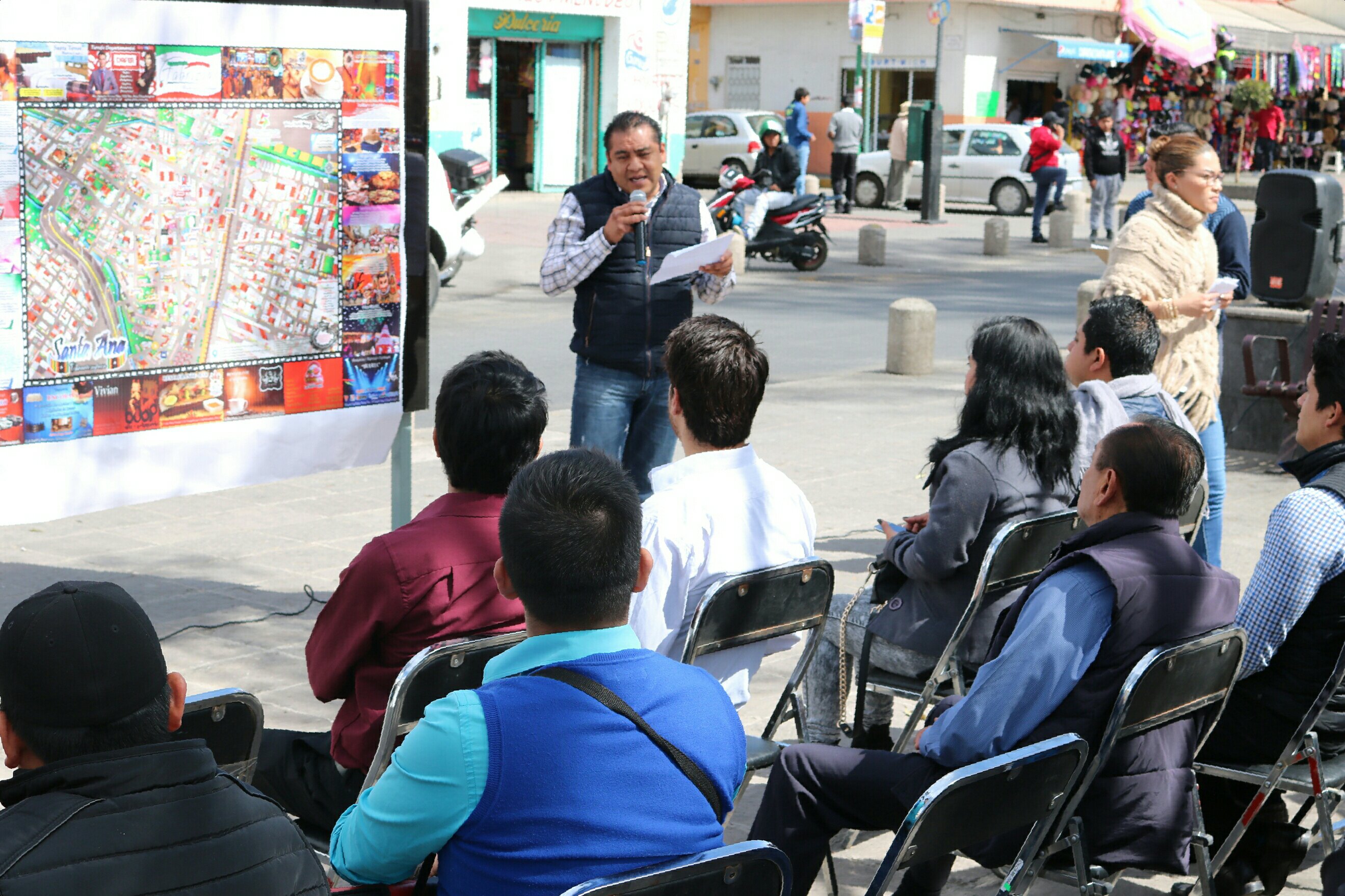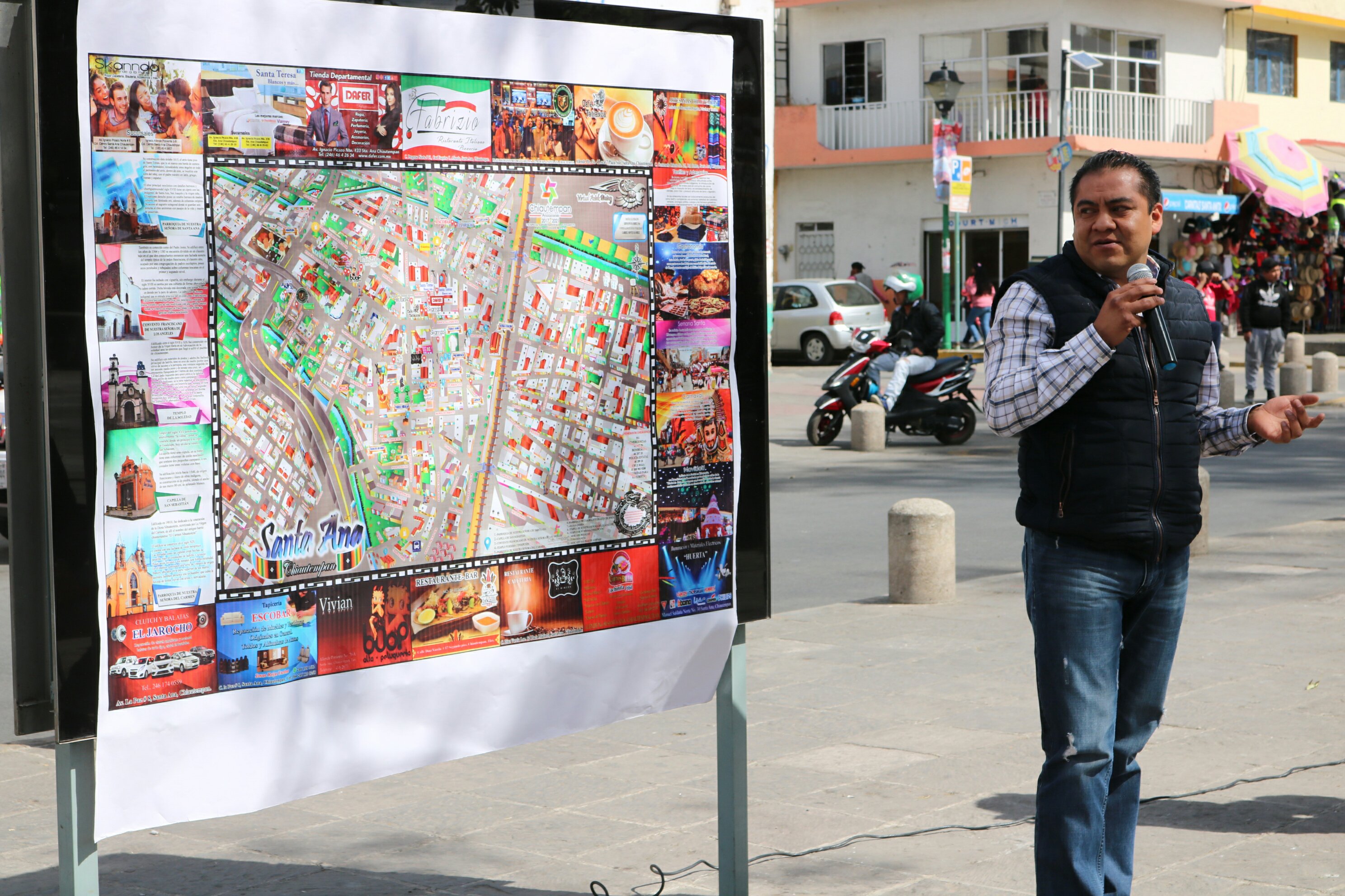 El Presidente Municipal de Chiautempan, Héctor Domínguez Rugerio colocó en el Parque Hidalgo el mapa turístico y comercial, que se realizó en coordinación con la empresa Virtual Aztek Design.