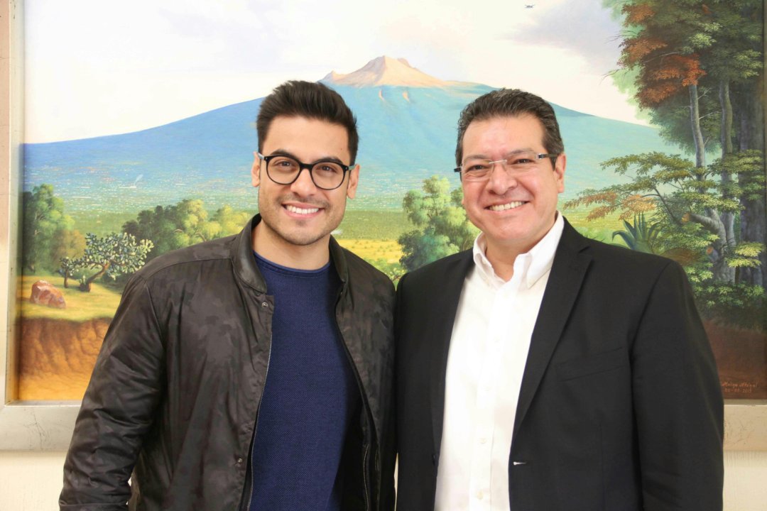 El Gobernador Marco Mena recibió en la Casa de Gobierno a Carlos Rivera, cantante originario de Huamantla, quien con sus éxitos musicales se ha convertido en un embajador de Tlaxcala y de México a nivel internacional.