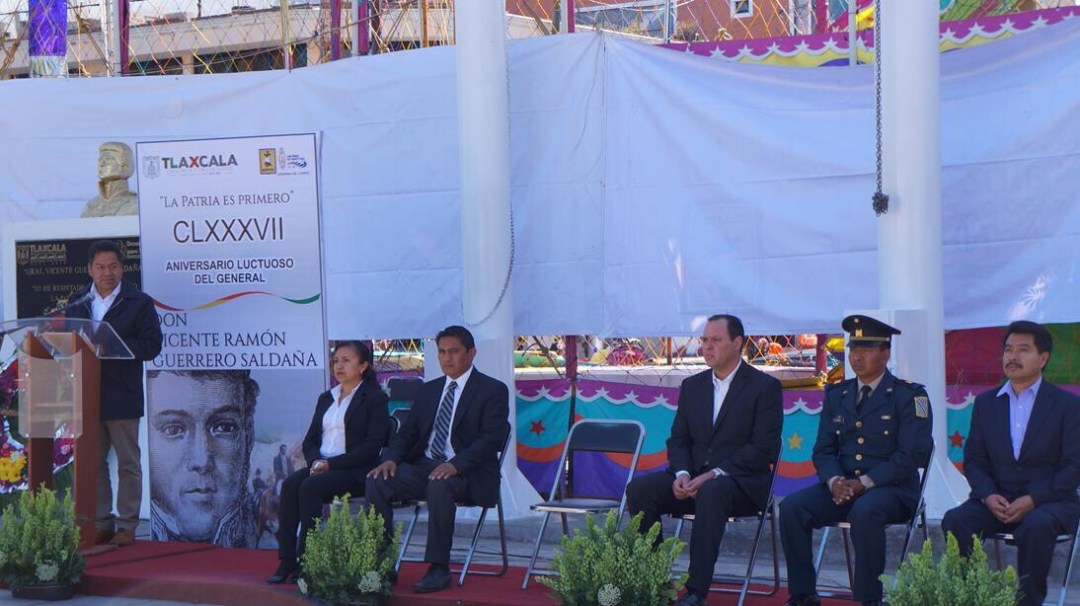 Mediante una ceremonia cívica con la presencia de autoridades estatales y municipales el alcalde, Cutberto B. Cano Coyotl rindió homenaje por la conmemoración del CLXXXVII aniversario luctuoso del General Vicente Ramón Guerrero Saldaña en la plaza cívica del municipio.