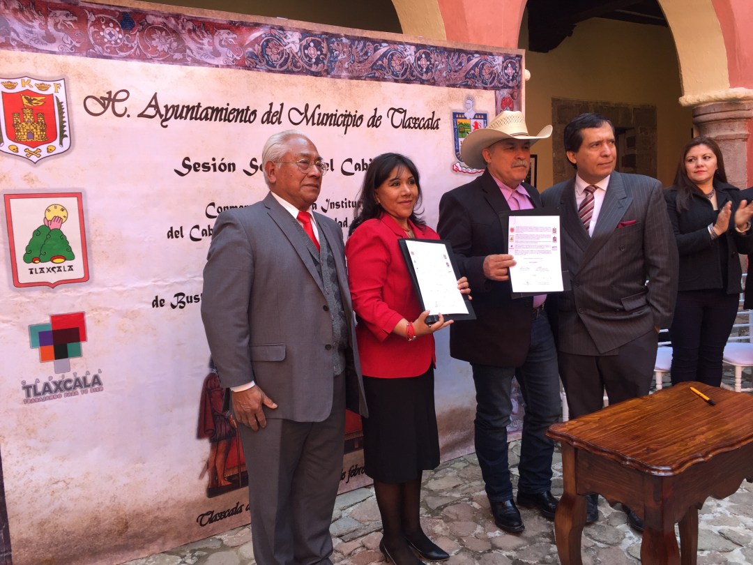 La alcaldesa de Tlaxcala, Anabell Ávalos Zempoalteca, encabezó el evento junto con su homólogo de Bustamante, Alfonso Resendez Garza, para realizar el hermanan de ambas ciudades, a petición de este último el 19 de enero pasado.