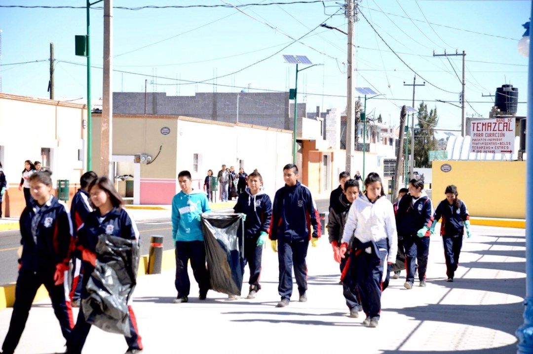 Estudiantes y empleados municipales limpiaron siete kilómetros de los costados del ramal que comprende de la carretera federal México-Veracruz a la cabecera municipal de Nanacamilpa, donde realizaron labores de recolección de basura, poda de árboles, corte de pencas de maguey, limpieza de cunetas, barranquillas y poda de pasto.