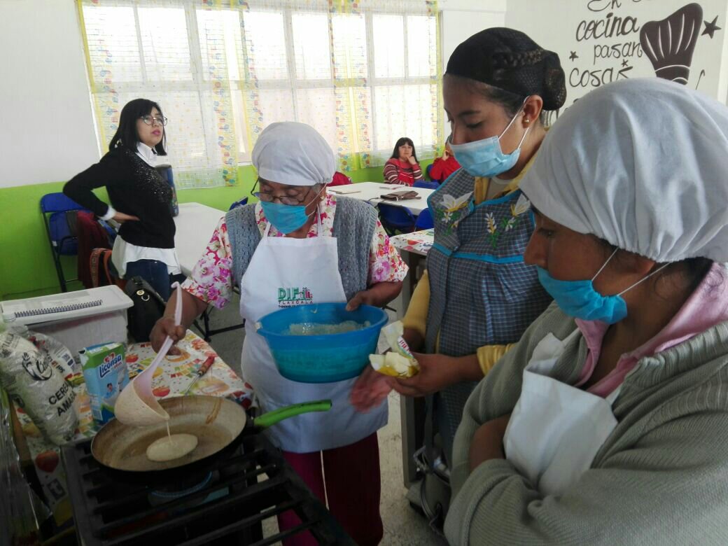 En el marco de estos talleres se realizó una demostración de alimentos (platillos) que pueden incluirse en la alimentación por su alto valor nutricional, dentro de los criterios de la alimentación correcta de los desayunadores escolares que brindan este servicio en modalidad caliente en cada institución.