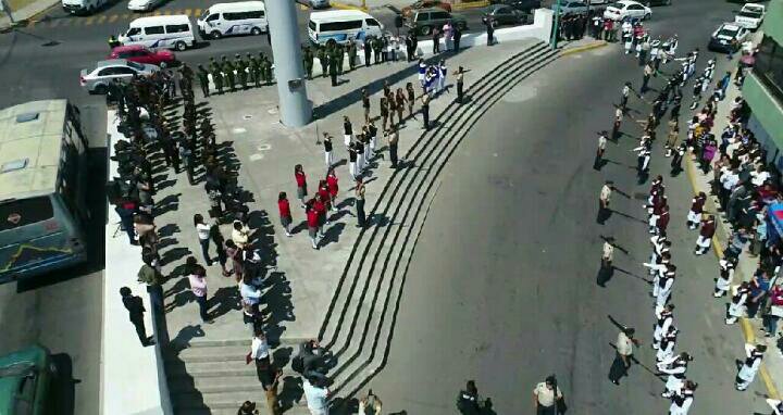 En dicha ceremonia los presentes entonaron los himnos a México y Tlaxcala, además de que las escoltas de las instituciones educativas rindieron protesta a este importante emblema de la nación, que es símbolo de la gesta heroica que nos dio libertad, justicia y nacionalidad mexicana.