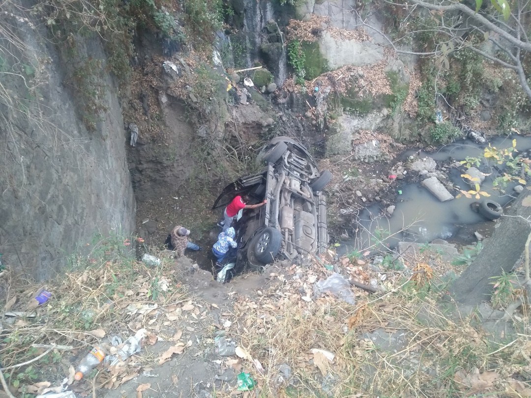 Un muerto y otra persona prensada, luego de volcar y caer a bordo de una camioneta sobre la barranca de “Covadonga”, ubicada a un costado de la carretera federal a Puebla – Tlaxcala.