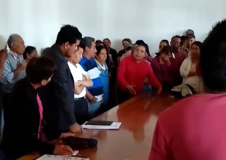 Nuevamente ante la ausencia del alcalde de Xicohtzinco, seis de ocho integrantes del cabildo acordaron la mañana de este lunes junto con vecinos del municipio, solicitar la destitución del contralor José Luis Sánchez Juárez y el tesorero Zenón Aarón Hernández Corte.