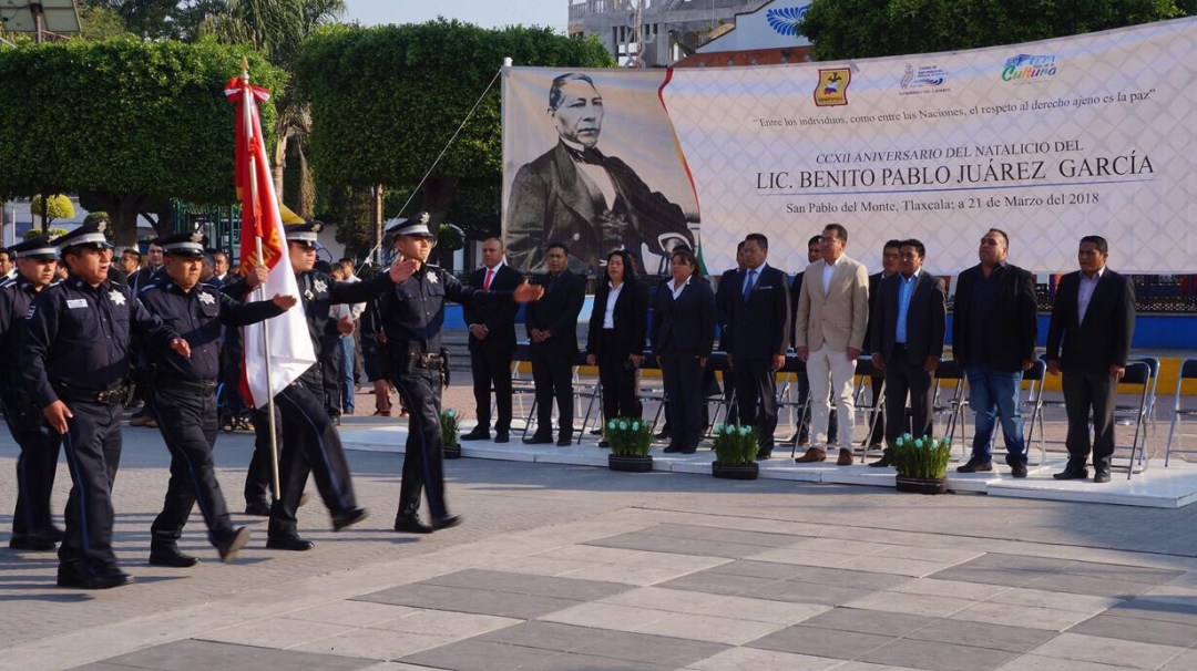 San Pablo del Monte, Tlax. – El H. Ayuntamiento de la Ciudad de San Pablo del Monte, en coordinación con la Dirección de Difusión y Cultura celebraron esta mañana 21 de marzo; el CCXII aniversario del natalicio del Lic. Benito Pablo Juárez García rindiendo un homenaje a quien fuera presidente de México de 1858 a 1872.