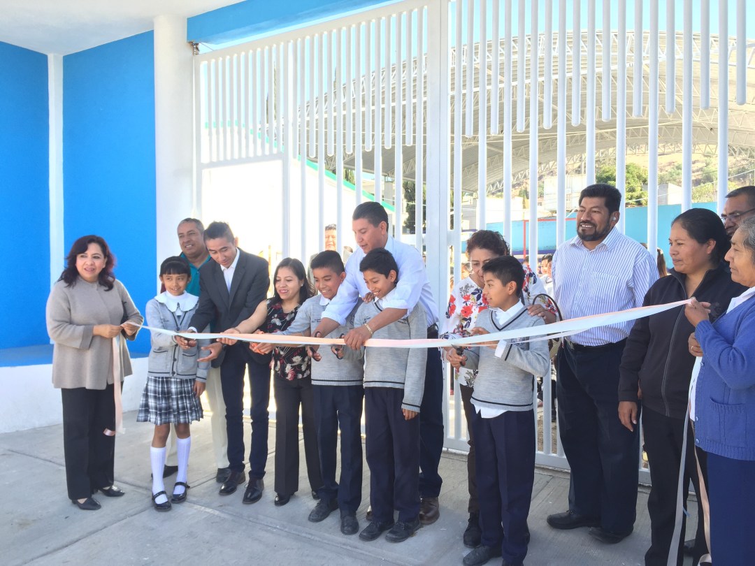 El representante popular, acompañado por integrantes de su cabildo, directivos y alumnos de la institución, acudieron a la inauguración de la obra ejecutada en coordinación de padres de familia de la institución en mención.