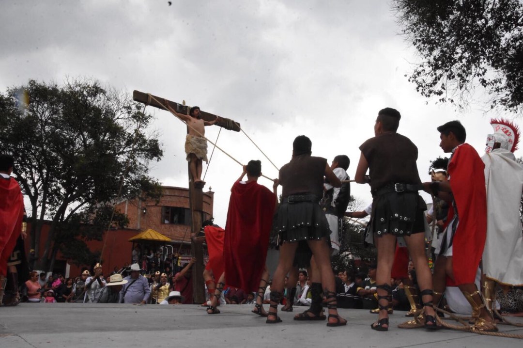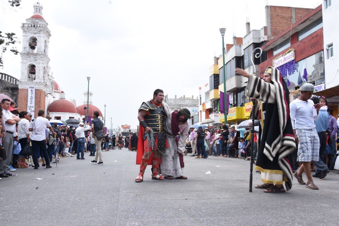 A las 9:00 horas se llevó a cabo la Calle de la Amargura donde estuvieron presentes el Grupo Experimental “Proyección Juvenil” y “Nosotros por Tradición”, para después trasladarse a la explanada del Parque Hidalgo, para experimentar de manera vívida la Crusifixción de Jesús de Nazareth por parte de los romanos, en donde también lo descendieron de la cruz y realizaron su sepultura.