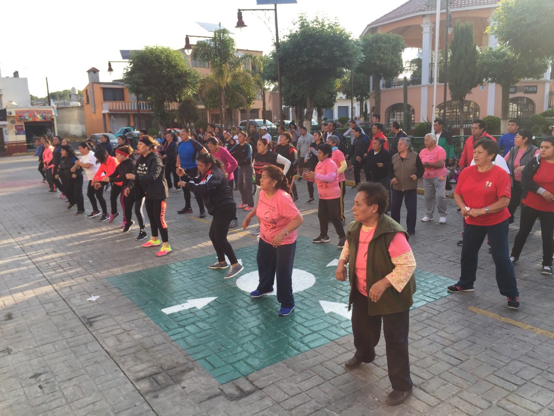 En Papalotla se reunieron poco más de 150 personas en la explanada principal de la presidencia municipal con una clase de Zumba que activó a los participantes.