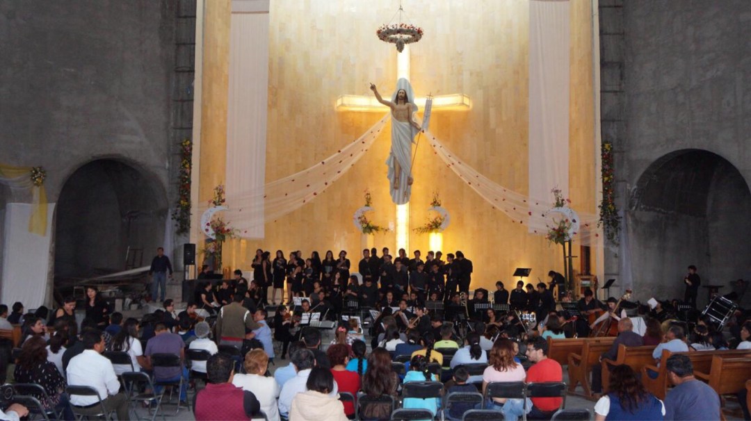 San Pablo del Monte, Tlax. – Teniendo como escenario la parroquia “Cristo Resucitado” en la comunidad de Tlaltepango, alumnos de la Orquesta Sinfónica de la Facultad de Artes y Coros de la BUAP ofrecieron un concierto este sábado 7 de abril en punto de las 18:00 horas.