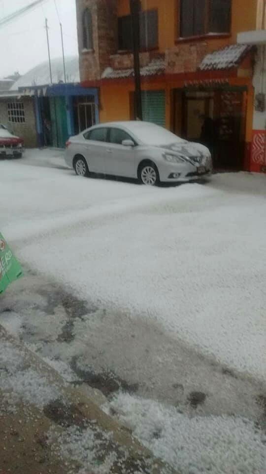 El fenómeno natural cubrió de blanco a este municipio y parte de Tetla de la Solidaridad, toda vez que azotó la comunidad de San José Atotonilco con daños en la techumbre del auditorio comunitario, así como la del plantel 13 del Centro de Educación Media Superior a Distancia (EMSAD), una bodega particular y dos cocheras.