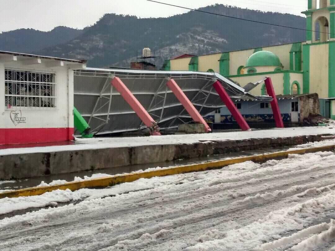 Esta tarde se registró una fuerte granizada en los municipios de Tlaxco y Tetla, situación que provocó la caída de dos techumbres en la comunidad de Atotonilco, perteneciente al primero, afortunadamente no reportan lesionados.