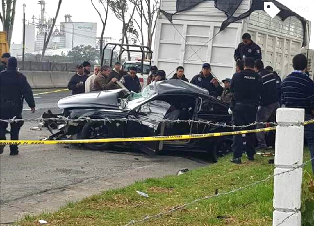 Al parecer el vehículo Mustang con placas de Hidalgo de color negro impactó contra un tractocamión y después se proyectó en un objeto fijo, lo que dejó la unidad prácticamente destrozada.