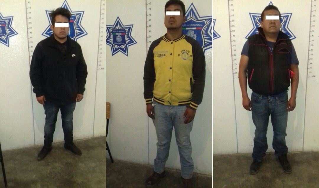 Los guardianes del orden detuvieron a Jesús N. de 22 años de edad; Moisés N. de 28 años y Víctor N. de 25 años, los tres originarios del pueblo de Ignacio Zaragoza, quienes fueron trasladados a la dirección de Seguridad Municipal, donde se realizó el resguardo de pertenencias e ingresados de manera momentánea al área preventiva.
