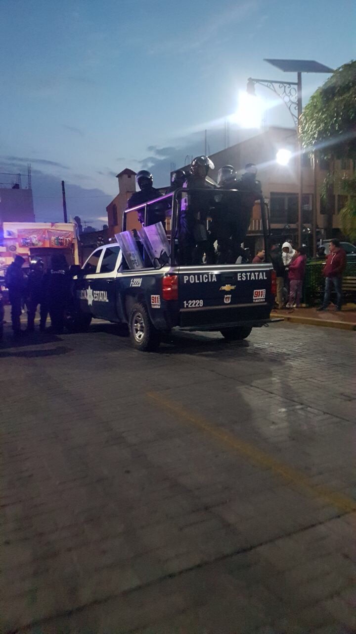 Ante la tensa situación, elementos de la Policía Estatal, ingresaron con un grupo antimotines para evitar que la población hiciera justicia por su propia mano.