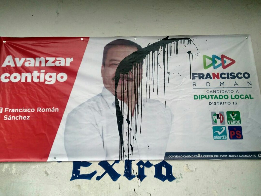 El equipo de campaña del candidato a diputado local por el distrito XIII, Francisco Román Sánchez denunció que algunas de sus lonas han sido dañadas por personas no identificadas, por lo que pidieron a los simpatizantes de otros partidos y hasta sus abanderados una campaña de respeto.