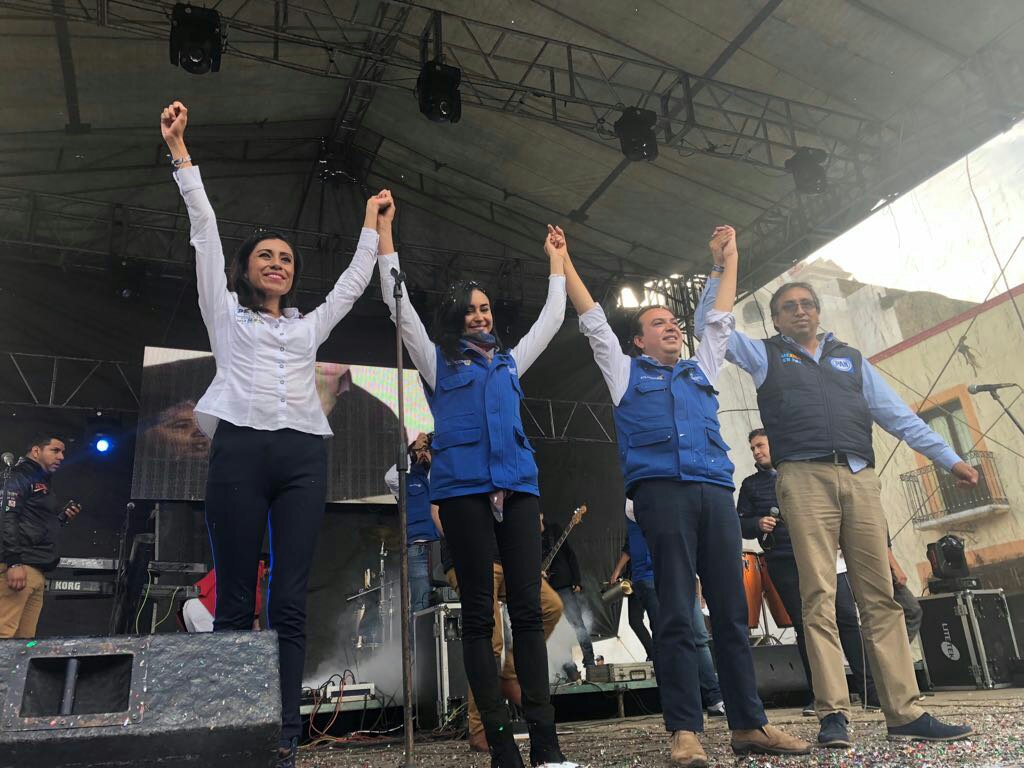 Acompañada del candidato a diputado federal, Humberto Macías, así como del líder estatal de Acción Nacional, Carlos Carreón, la abanderada de Por Tlaxcala al Frente, culminó sus actividades proselitistas de manera formal.