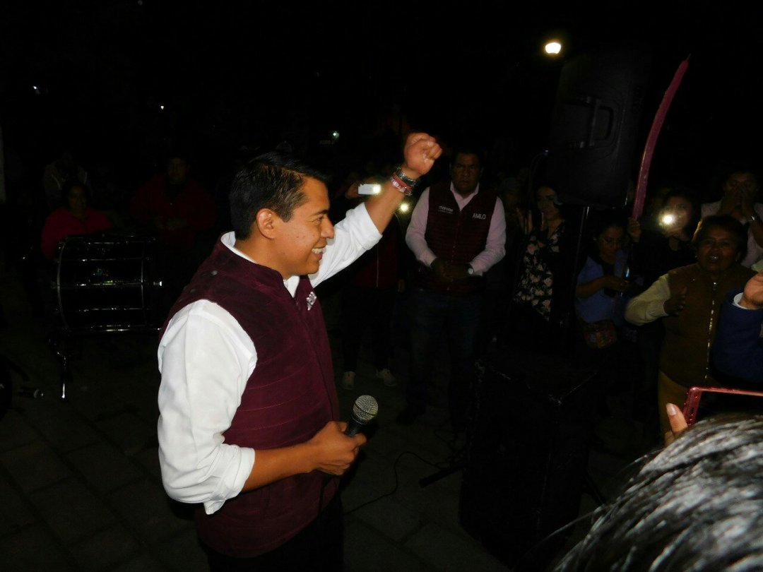 El abanderado de la coalición “Juntos Haremos Historia”, es un líder joven emanado del sur del estado que la noche de ayer recibió el reconocimiento de cientos de ciudadanos en su natal comunidad de El Carmen Aztama.