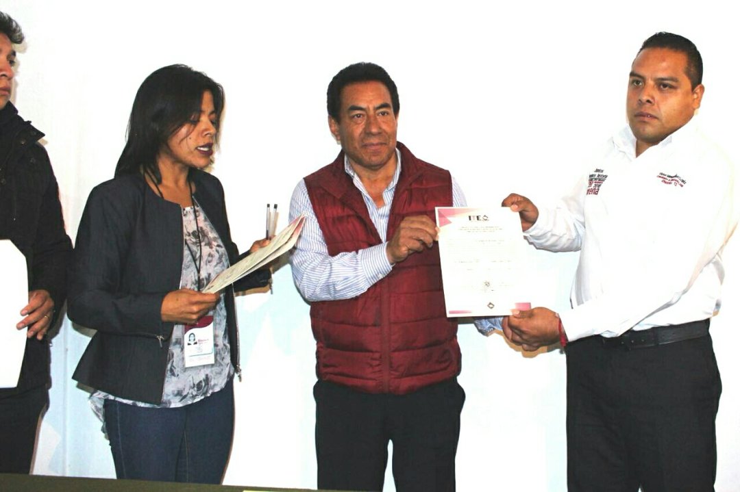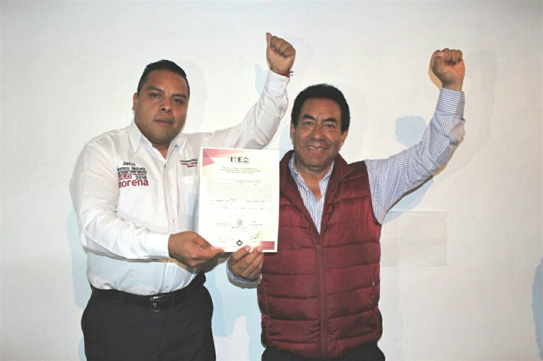 Acompañado de su suplente, Daniel Juárez Flores, el abanderado de Morena recibió este documento tras obtener 18 mil 101 votos en la pasada elección del 1 de Julio.