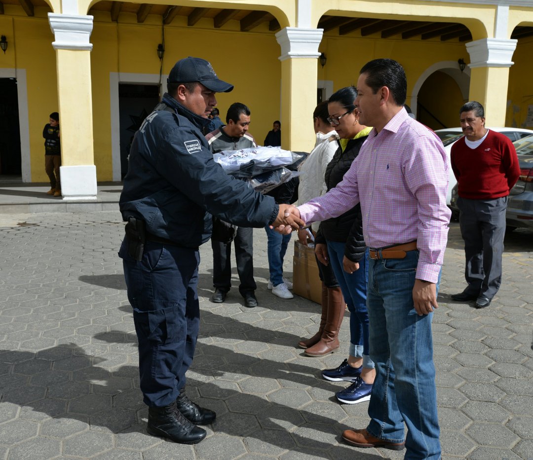 Con la finalidad de mejorar su imagen y de que la ciudadanía vea una policía diferente, el alcalde de Nanacamilpa Víctor Hugo Sánchez Flores, en compañía de la Síndico Alicia Flores Lara, del regidor de Seguridad Pública, José Pablo Nájera Trejo, y demás regidores, realizaron la entrega de uniformes a los elementos de la Dirección de Seguridad Pública y Vialidad del municipio.