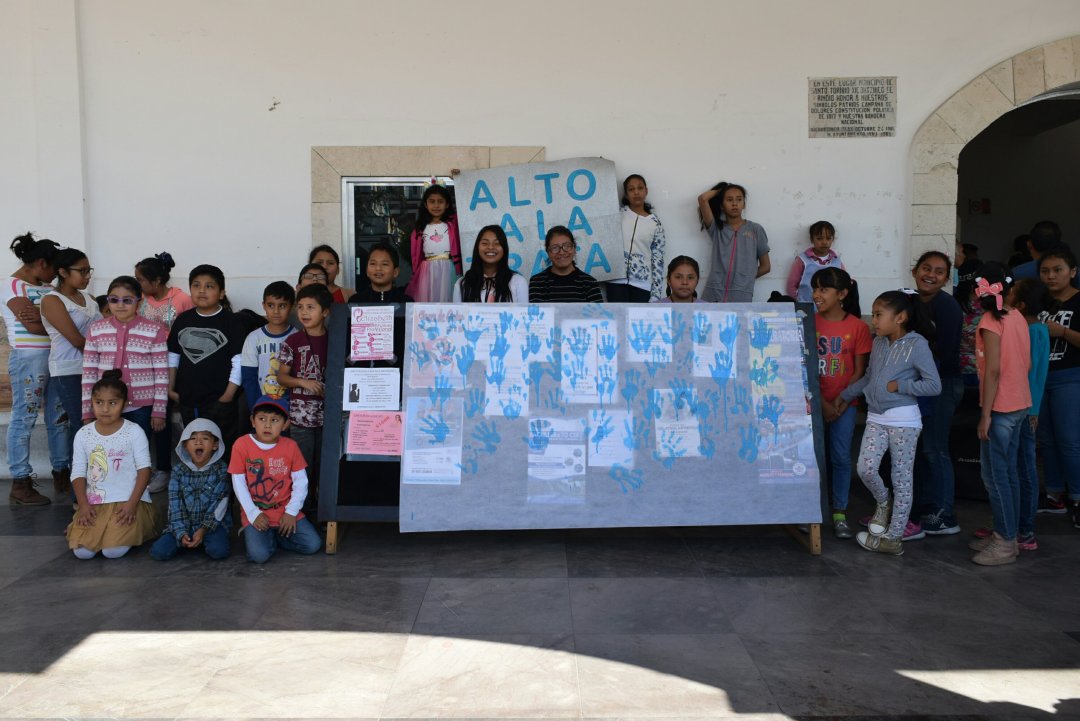 Asimismo, realizaron una actividad en la que plasmaron la huella de sus manos sobre un mural, como símbolo de “alto” a la problemática que afecta a toda la sociedad.
