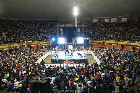 El pasado fin de semana, se llevó a cabo el espectáculo de la lucha libre AAA, en el marco de la Feria Nacional de Huamantla, en un ambiente familiar que prácticamente llenó la plaza de toros.