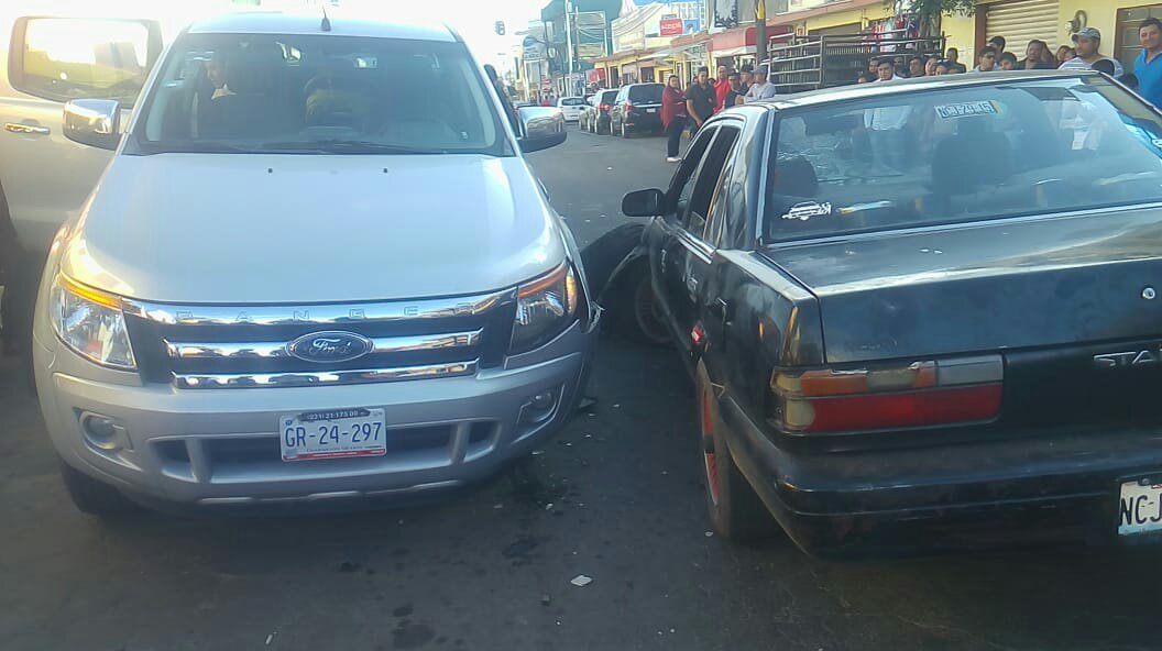 La tarde de este domingo se registró el percance sobre la calle Francisco I. Madero, casi en esquina con Aquiles Serdán, en donde afortunadamente no se reportan personas lesionadas.