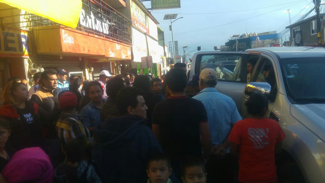Elementos de seguridad pública intentaron retirar ambos vehículos con grúa, debido a que esta calle es el acceso principal al centro del municipio.