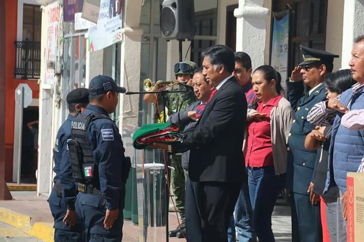 En un evento cívico, el representante popular dio la bienvenida al Capitán Primera Arma Blindada, Isidoro Rodríguez Hernández, así como al encargado del módulo, Capitán Segundo de Materiales de Guerra, Eloy Cortés Torres y al representante de la Comisión Ejecutiva del Sistema Estatal Seguridad Pública, Víctor Saúl Gutiérrez.