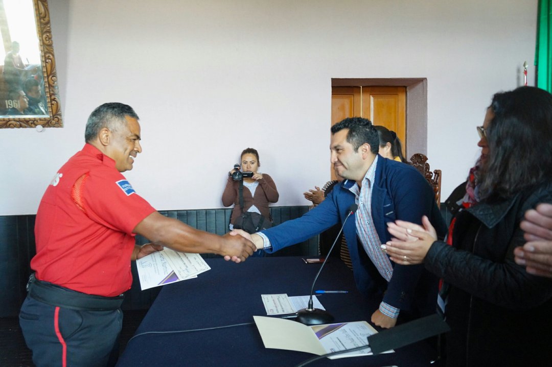 Durante su intervención, el presidente municipal, Neptalí Gutiérrez Juárez felicitó al bombero Enrique Huerta Martínez, y, a Oswaldo Flores Padilla quienes se han enfrentado a situaciones donde han salvado la vida de varias personas.